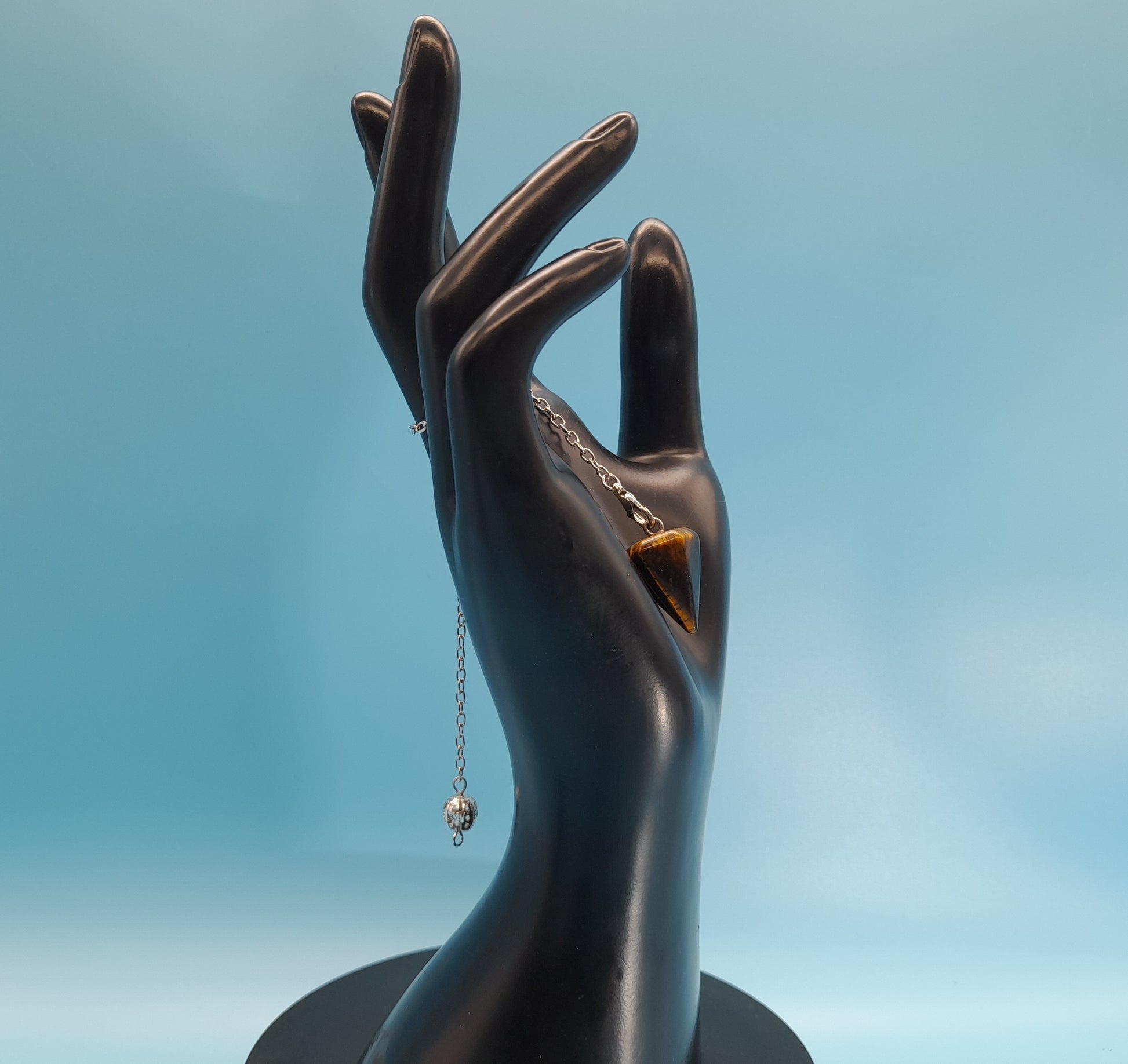 PENDULE DE RADIESTHÉSIE EN PIERRE OEIL DU TIGRE - BIJOU ARTISANAL, UNIQUE & ORIGINAL