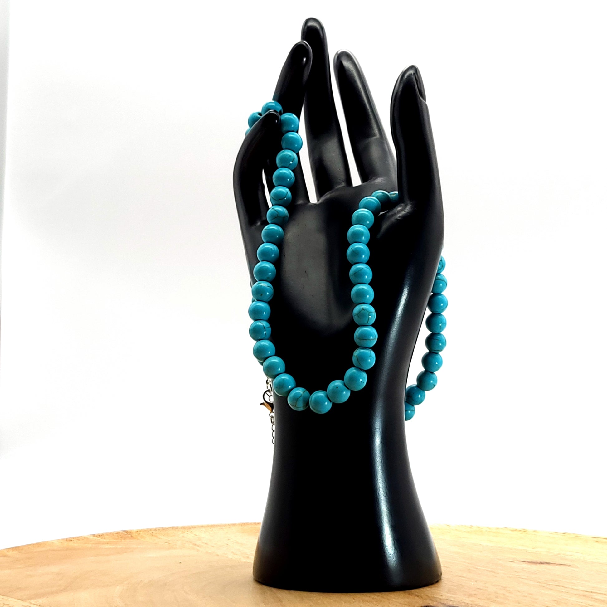 GRAND COLLIER COMPLET DE PERLES RONDES EN PIERRE HOWLITE BLEUE - BIJOU ARTISANAL & UNIQUE
