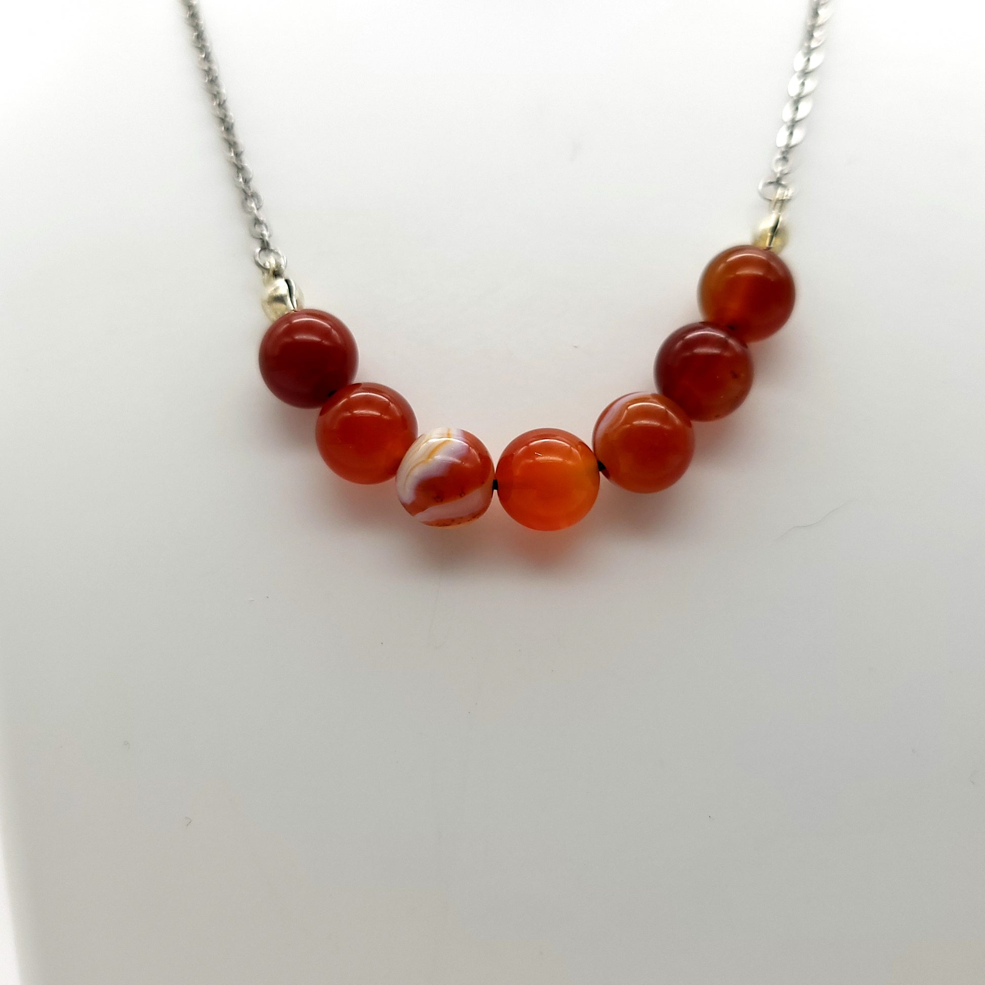 COLLIER DE 7 PERLES EN PIERRE AGATE ORANGE - BIJOU ARTISANAL, UNIQUE & ORIGINAL