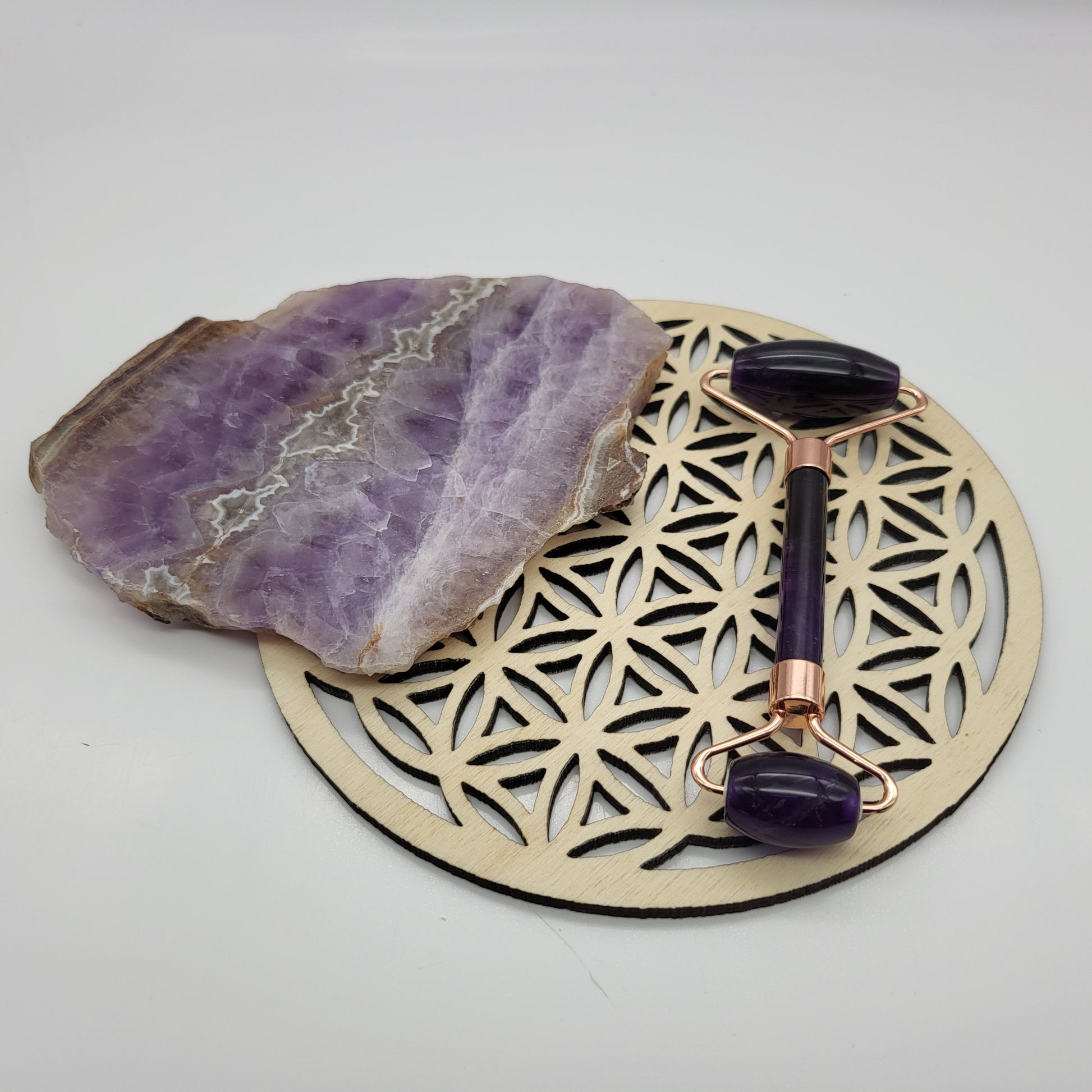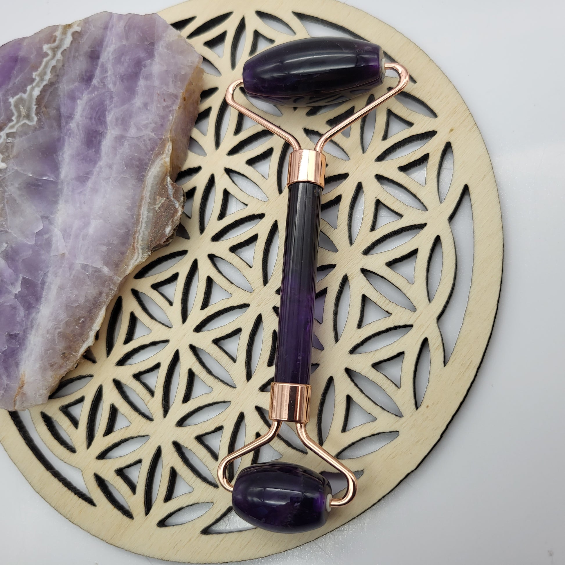 OUTIL de BEAUTÉ « 2 ROULEAUX » EN PIERRE AMÉTHYSTE N°1 - MASSAGE & ANTI-ÂGE