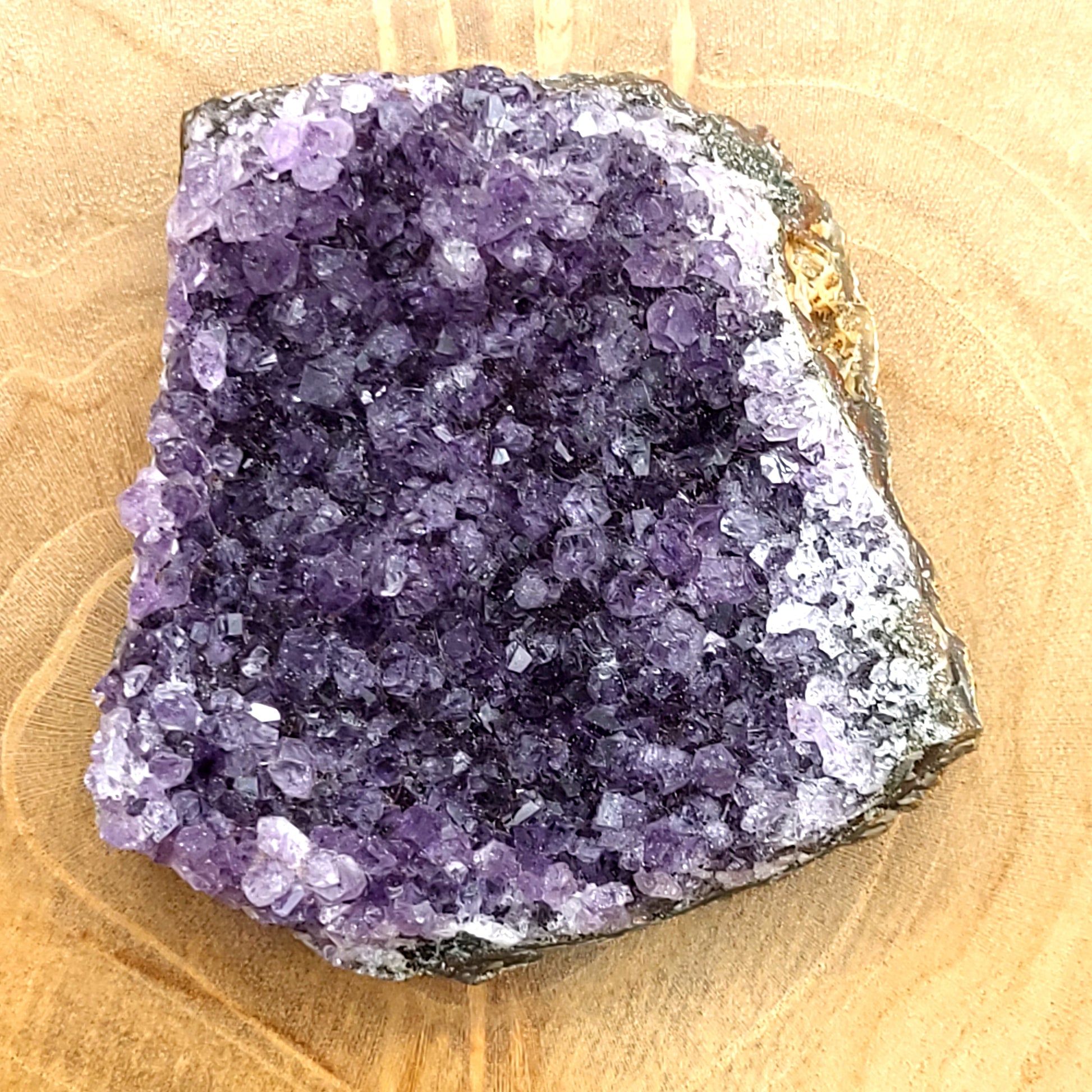 Chacune possède de la roche très dure grise, plus ou moins foncée, qui représente l’extérieur de la géode d’origine, qui sert de support aux nombreux cristaux d’Améthyste. Découvrez les jeux de nuances de violets et de mauves que renferment tous ces cristaux de tailles irrégulières, aux facettes éclatantes…ce qui confère la beauté et le charme de chacune.