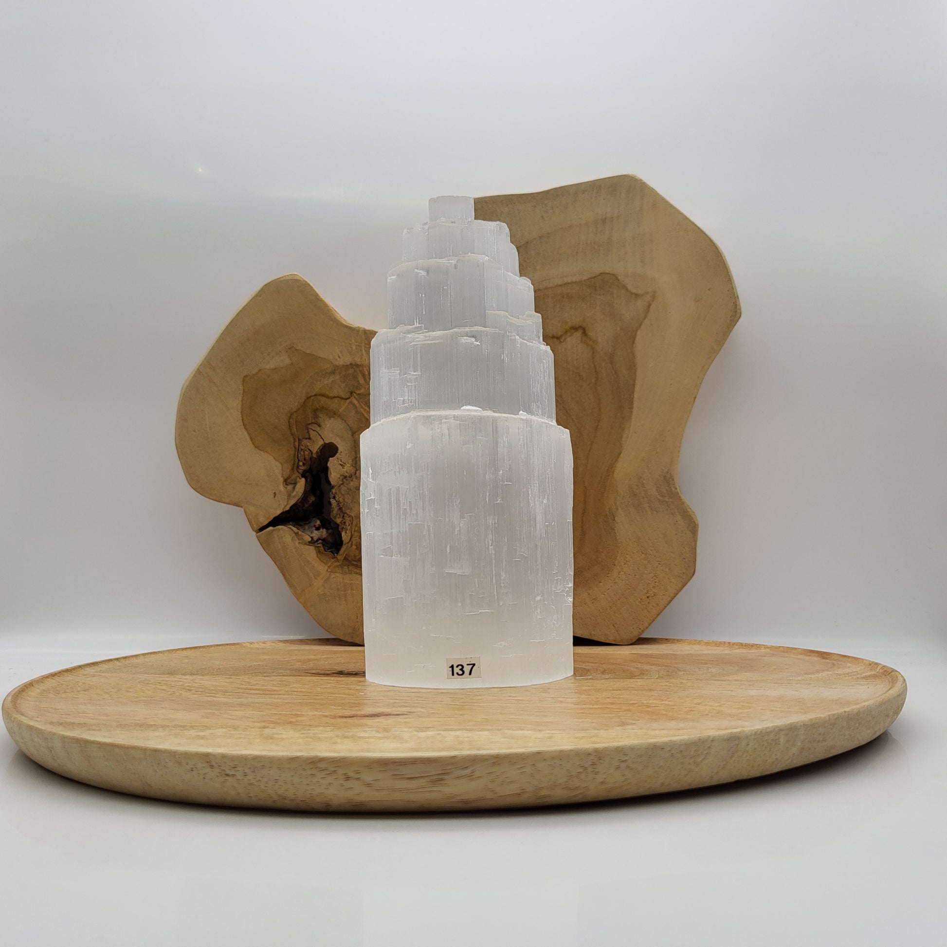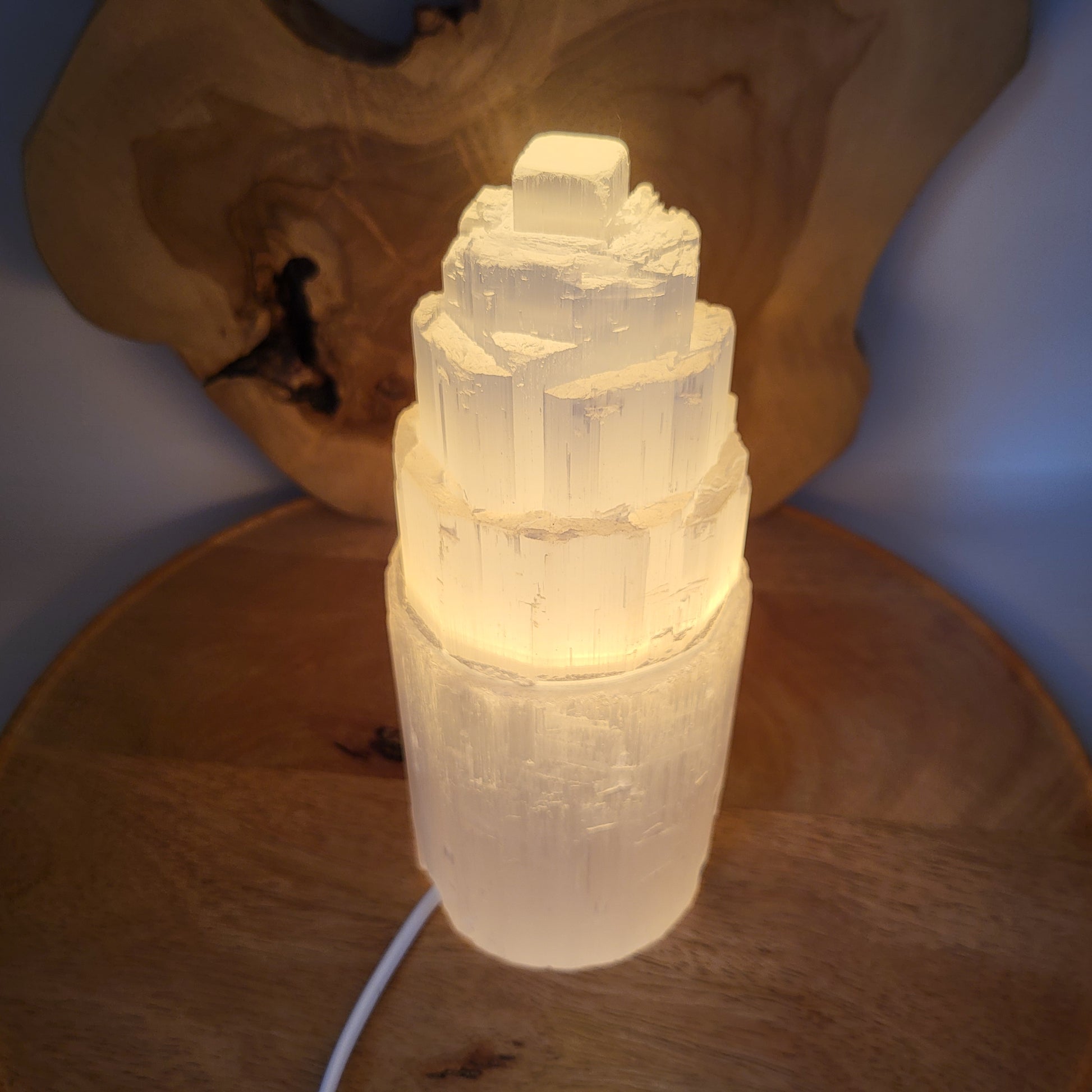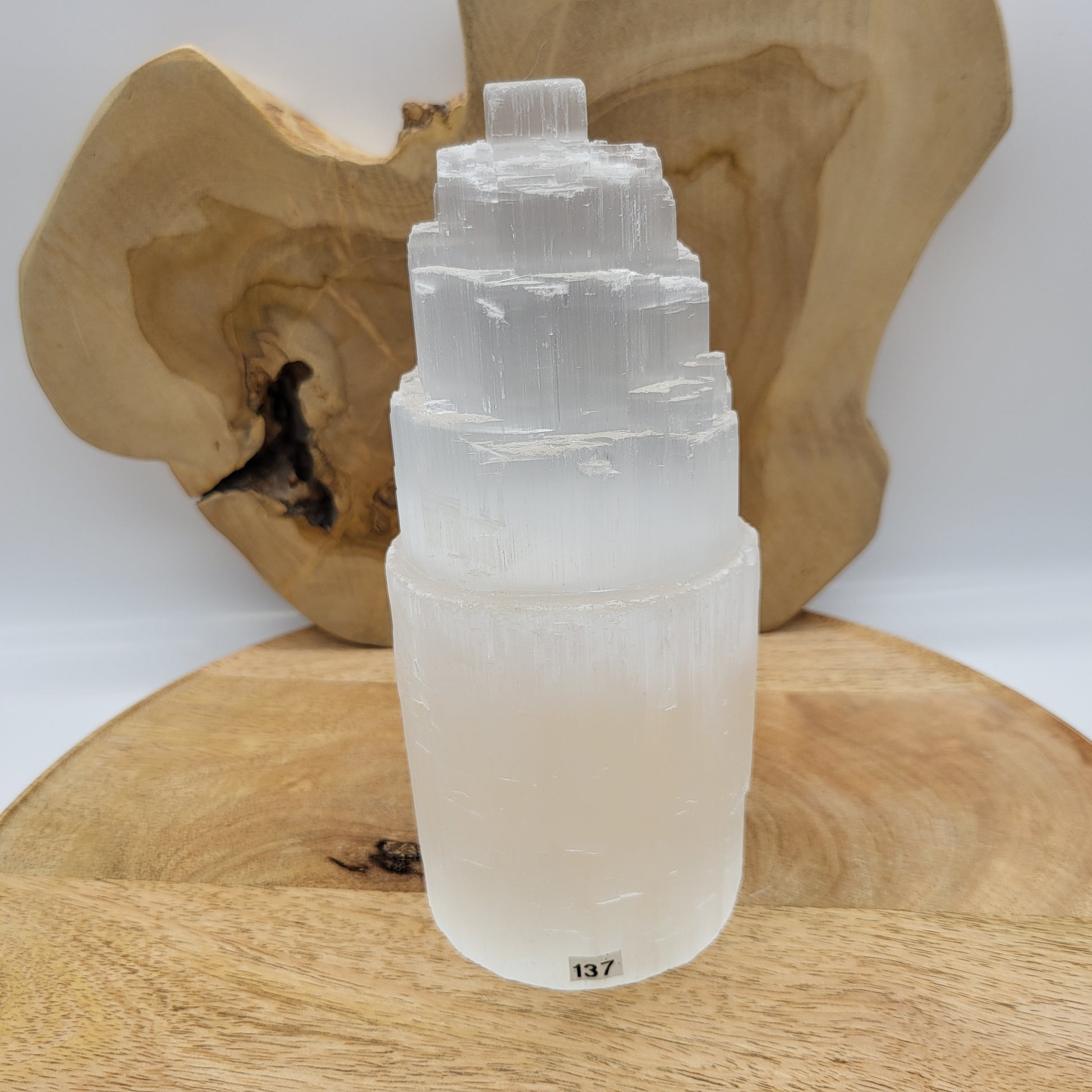 GRANDE LAMPE N°137 TOUR A ÉTAGES EN PIERRE SÉLÉNITE - UNIQUE, ORIGINALE & ARTISANALE