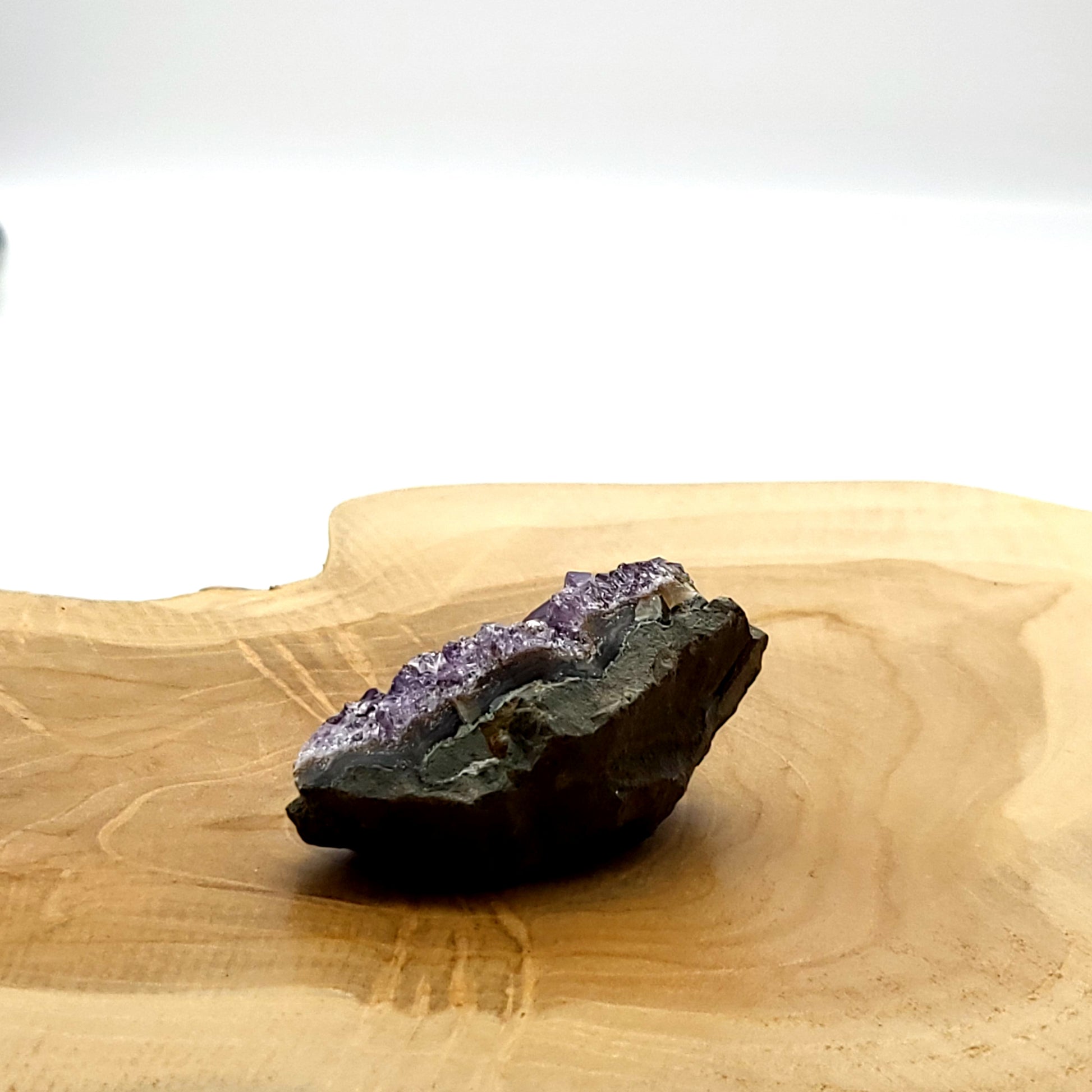 Chacune possède de la roche très dure grise, plus ou moins foncée, qui représente l’extérieur de la géode d’origine, qui sert de support aux nombreux cristaux d’Améthyste. Découvrez les jeux de nuances de violets et de mauves que renferment tous ces cristaux de tailles irrégulières, aux facettes éclatantes…ce qui confère la beauté et le charme de chacune.