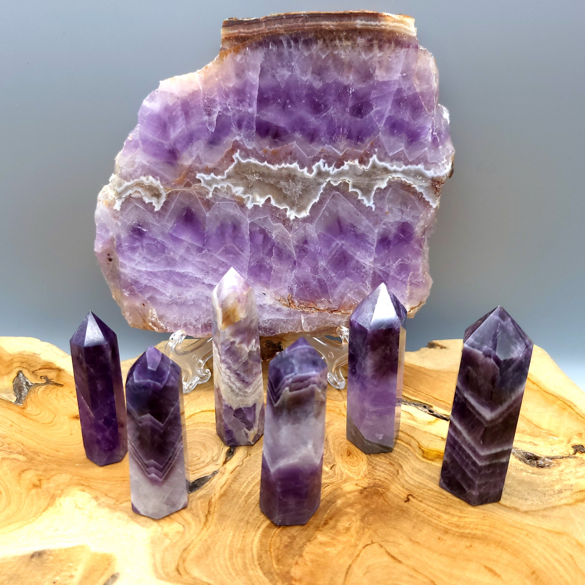 TOURS en POINTES EN PIERRE AMÉTHYSTE RUBANÉE AU CHOIX - UNIQUES & ARTISANALES