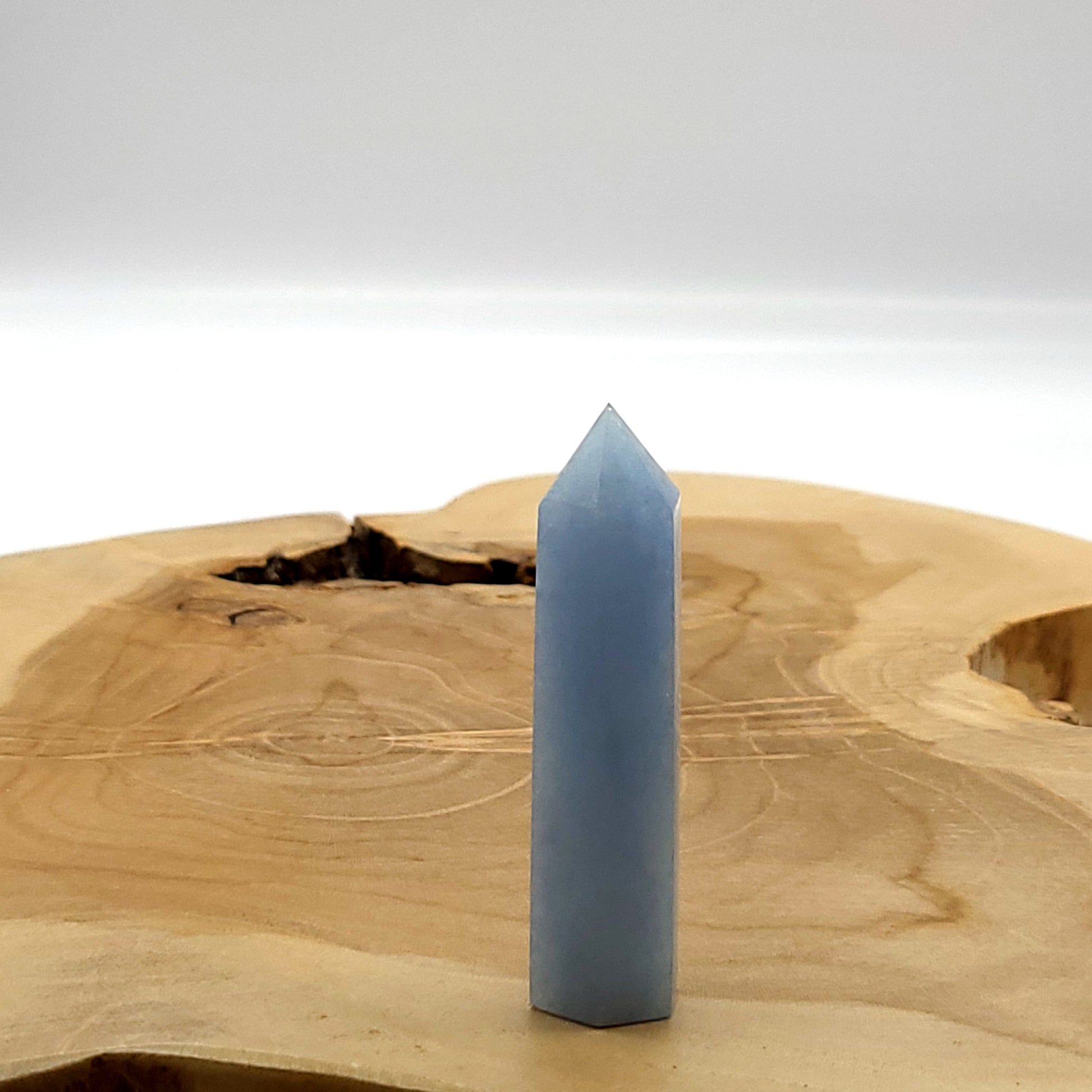 Intrigante cette TOUR en POINTE sculptée en PIERRE SEMI-PRÉCIEUSE de CÉLESTINE (coloris bleu gris, semi opaque) au toucher lisse. Vendue à l’unité, à choisir parmi les différentes tailles (et pierres proposées ici).