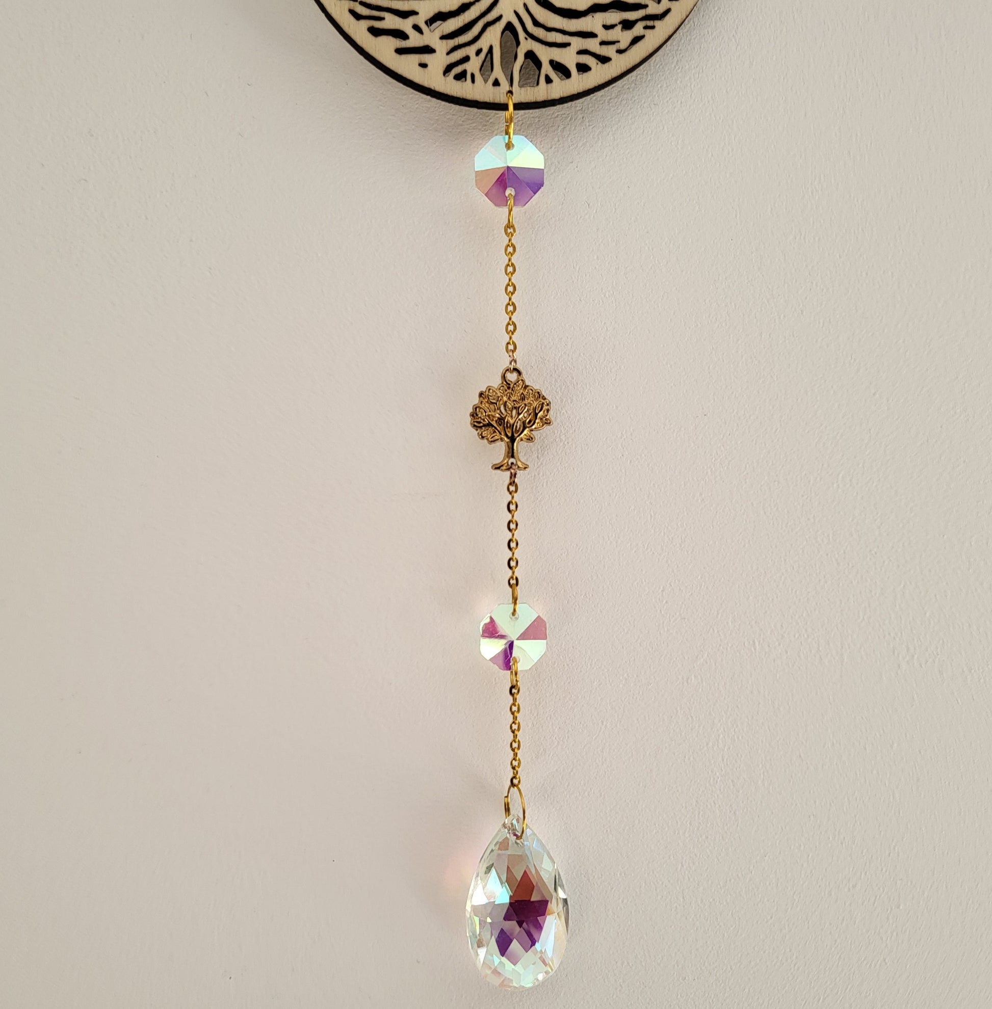 DÉCORATION SUNCATCHER 7 CHAKRAS EN PIERRES + ARBRE de VIE EN BOIS - ATTRAPE SOLEIL UNIQUE, ARTISANAL & ORIGINAL