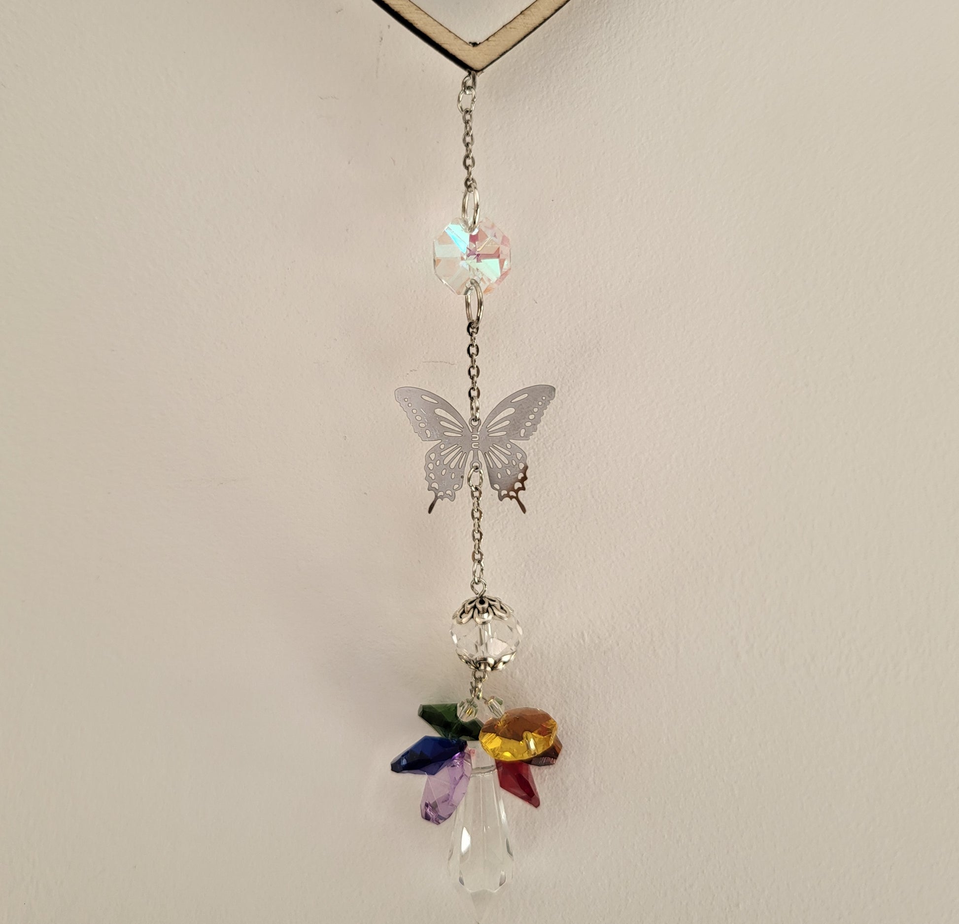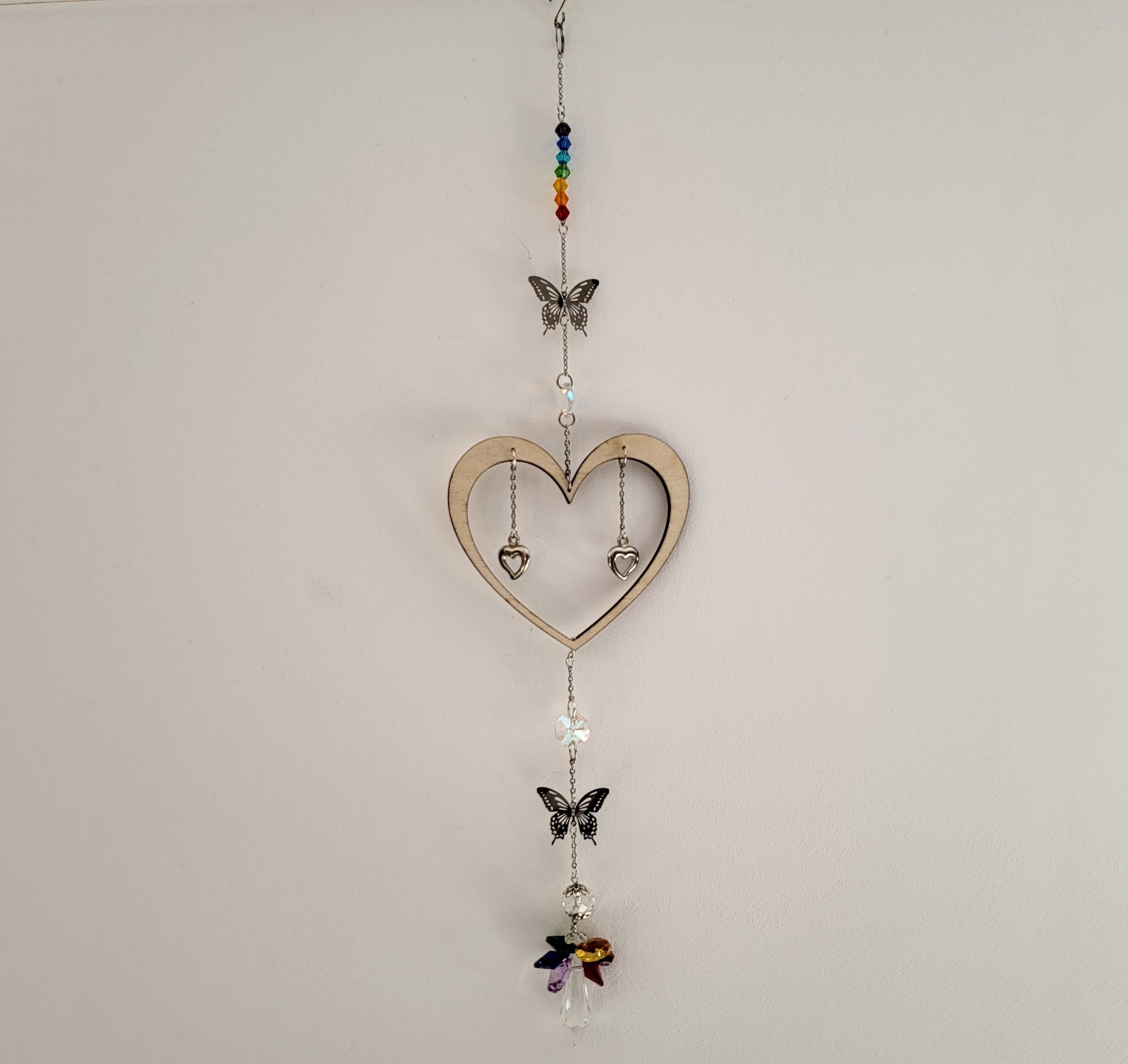 DÉCORATION SUNCATCHER 7 CHAKRAS + ANGE & PAPILLONS + COEUR EN BOIS - ATTRAPE SOLEIL UNIQUE, ARTISANAL & ORIGINAL