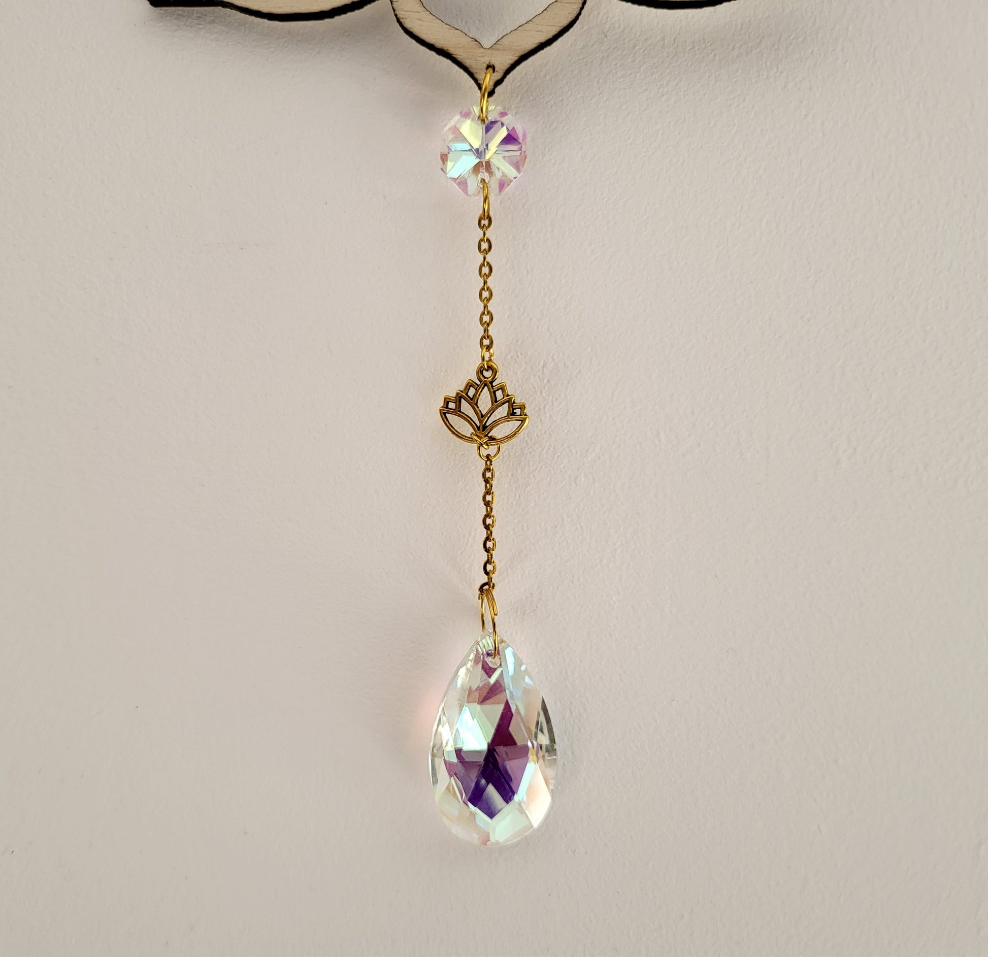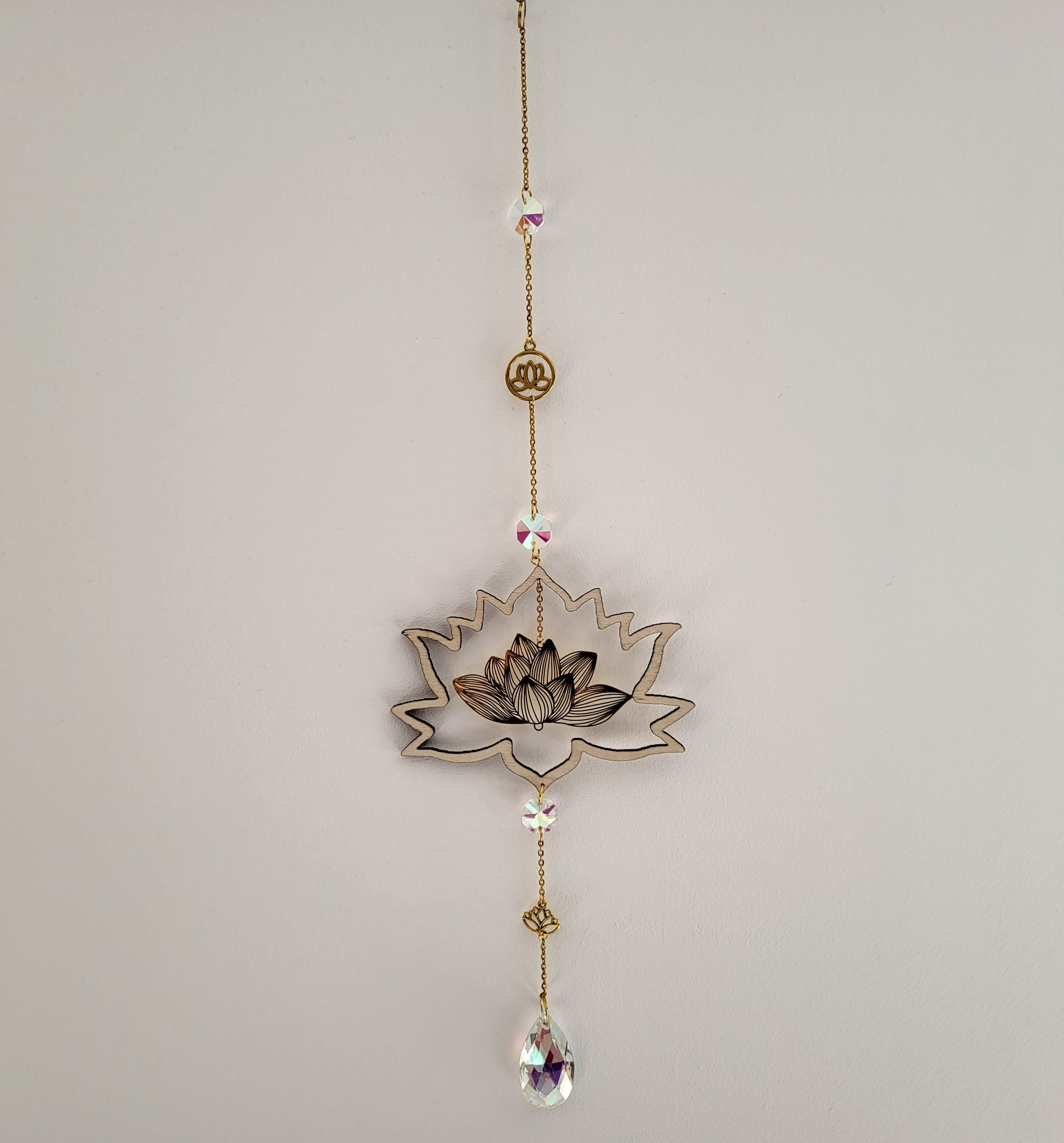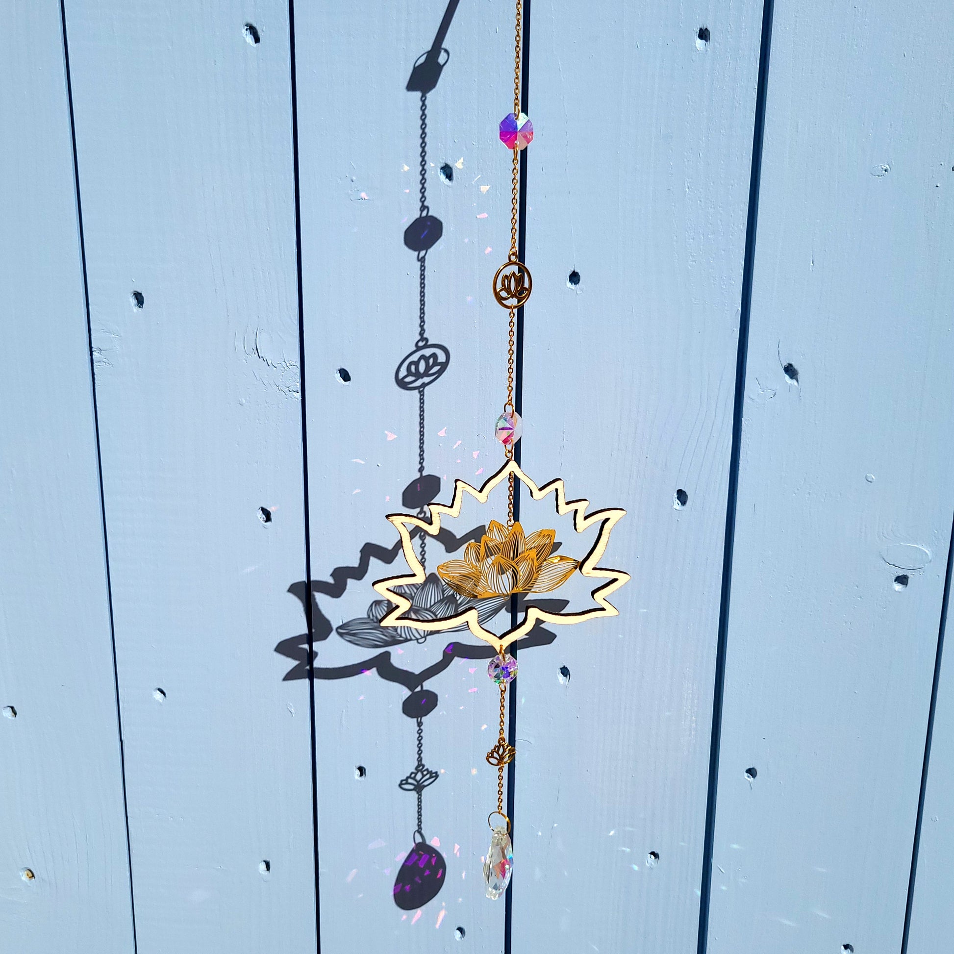 DÉCORATION SUNCATCHER EN BOIS + LOTUS EN MÉTAL DORÉ - ATTRAPE SOLEIL UNIQUE, ARTISANAL & ORIGINAL
