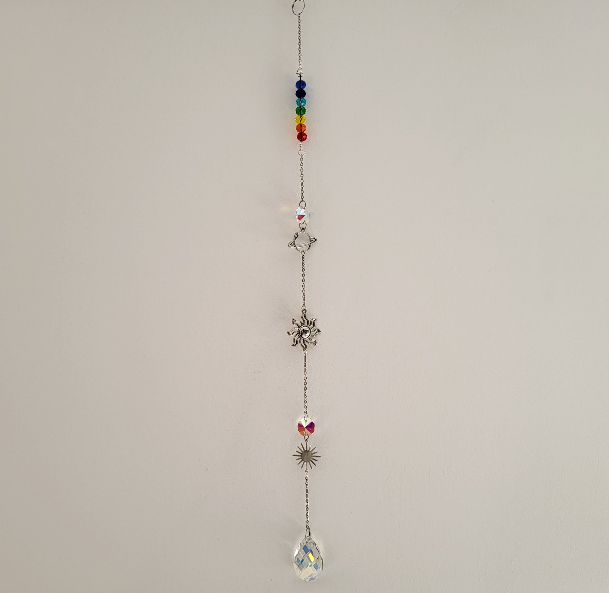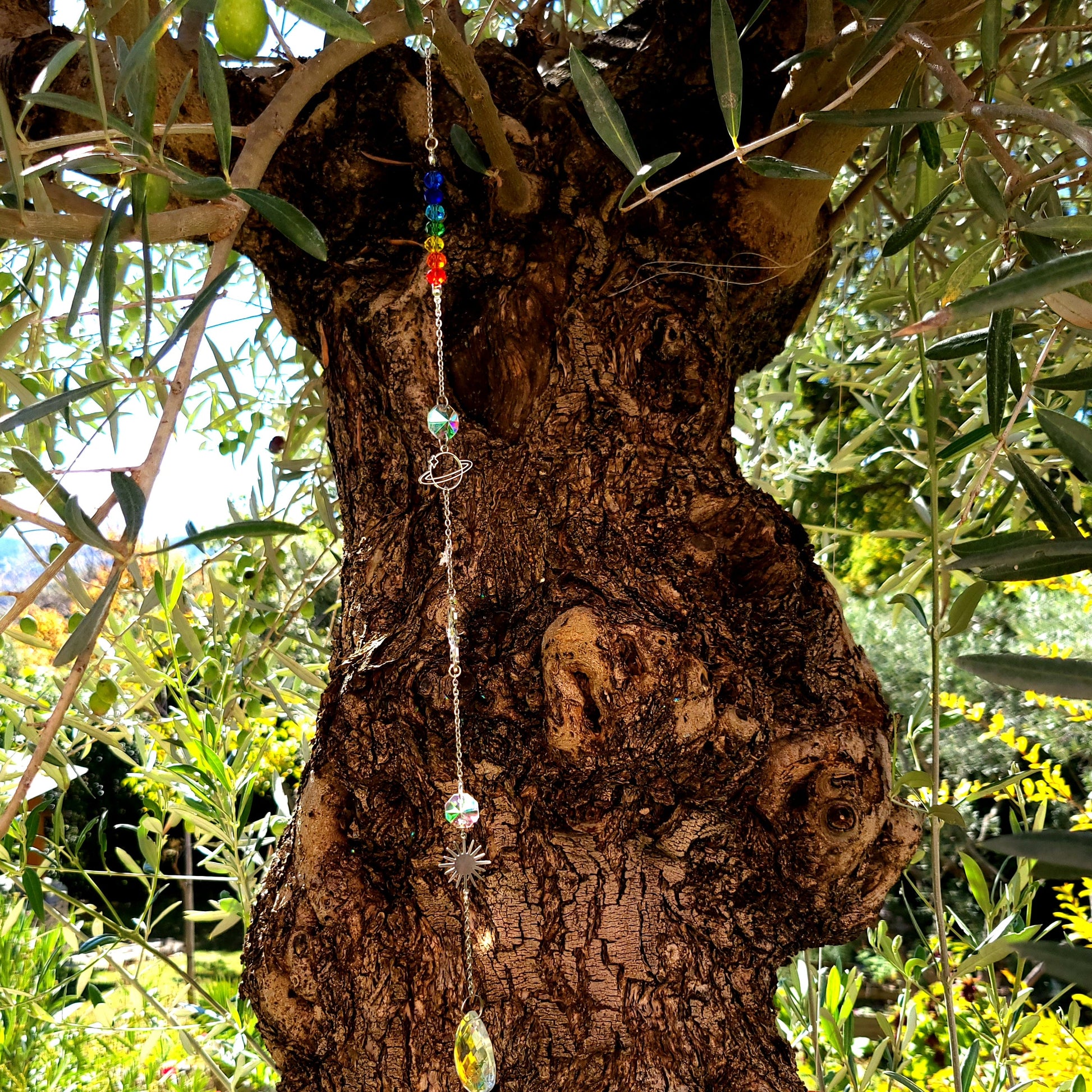 DÉCORATION SUNCATCHER " UNIVERS + 7 CHAKRAS " avec SOLEILS & PLANÈTE SATURNE - ATTRAPE SOLEIL UNIQUE, ARTISANAL & ORIGINAL