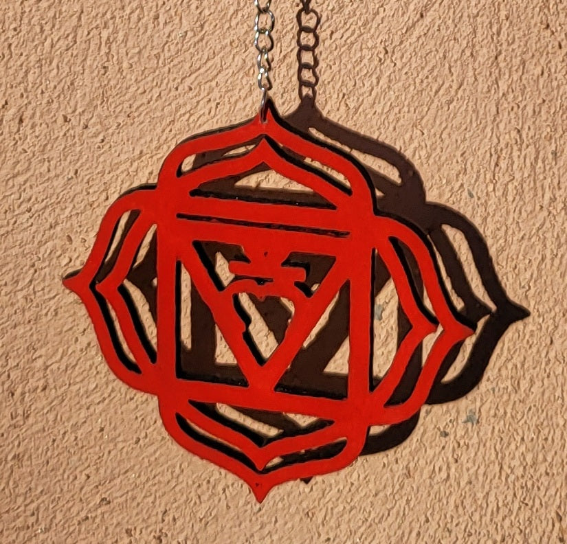 1er CHAKRA RACINE : « Muladhara » (rouge, à la base de l'épine dorsale).